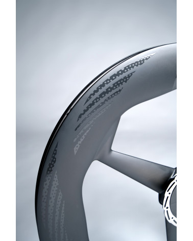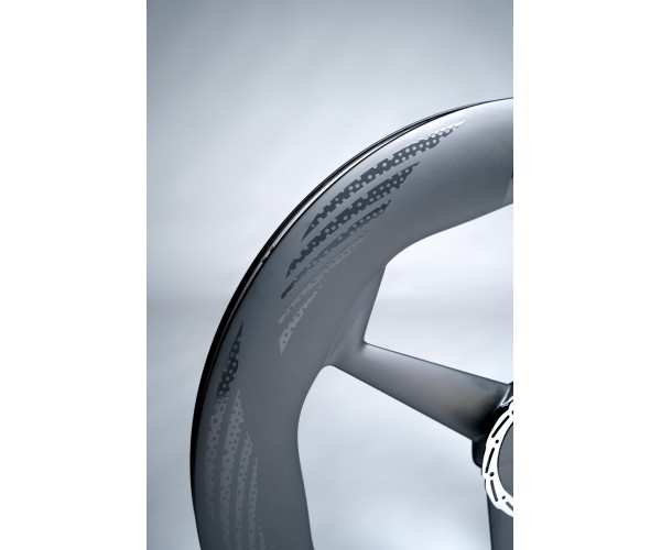 During development, we tested 8 different spoke concepts. The final design was selected as the optimal solution in terms of aerodynamics and sailing effect—allowing the rider to harness crosswinds for additional speed.