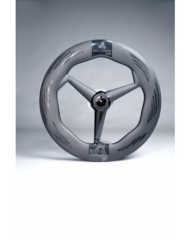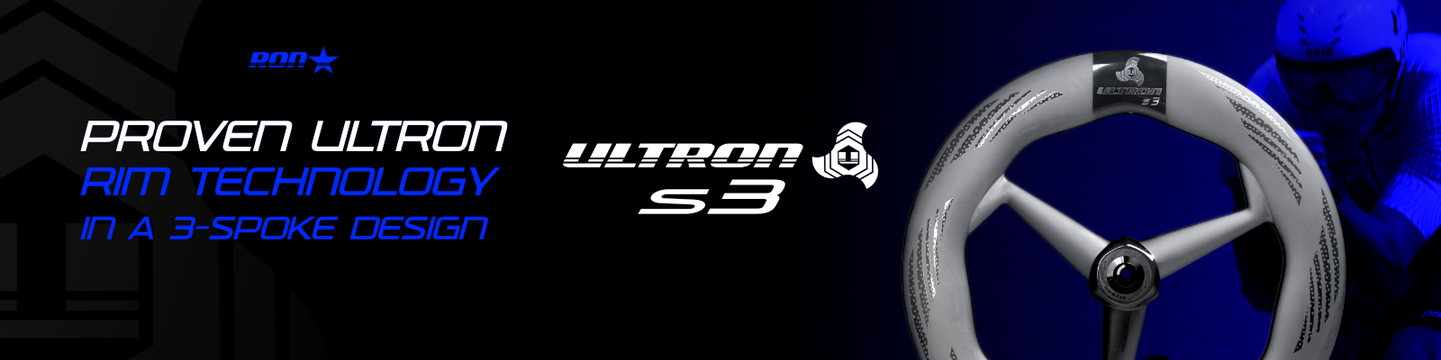 Built around our refined OCT Aero rim profile, ULTRON S3 sets a new benchmark for triathlon and time trial performance. The three wide, wing-shaped spokes are engineered to minimize aerodynamic drag while maintaining stability in changing wind conditions.