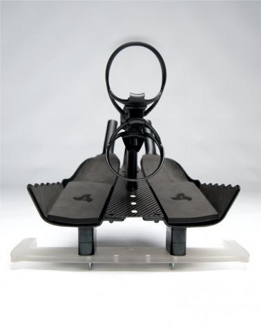 The specially designed wing shape, combined with the plate connecting the aerobars, organizes air flow around the body.